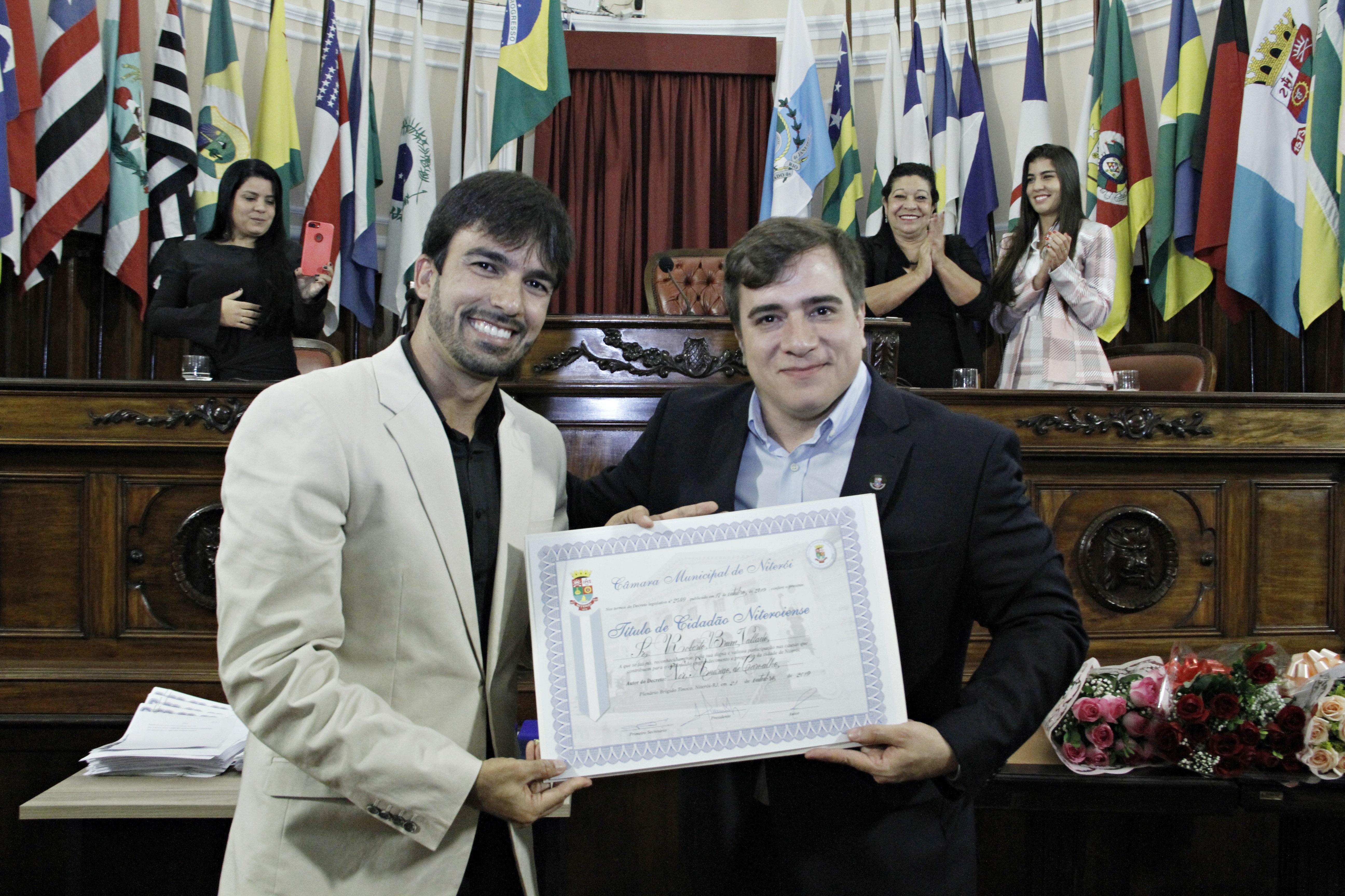 O empresário e ex-jogador de futebol Roberto Brum Vallado, recebeu o Título de Cidadão Niteroiense oferecido pelo vereador Andrigo de Carvalho (SDD). Na noite da última segunda-feira (21/10) familiares, amigos, admiradores, funcionários e alunos do Colégio Objetivo Camboinhas (Região Oceânica) lotaram as dependências da Câmara de Vereadores para prestigiar a sessão especial.